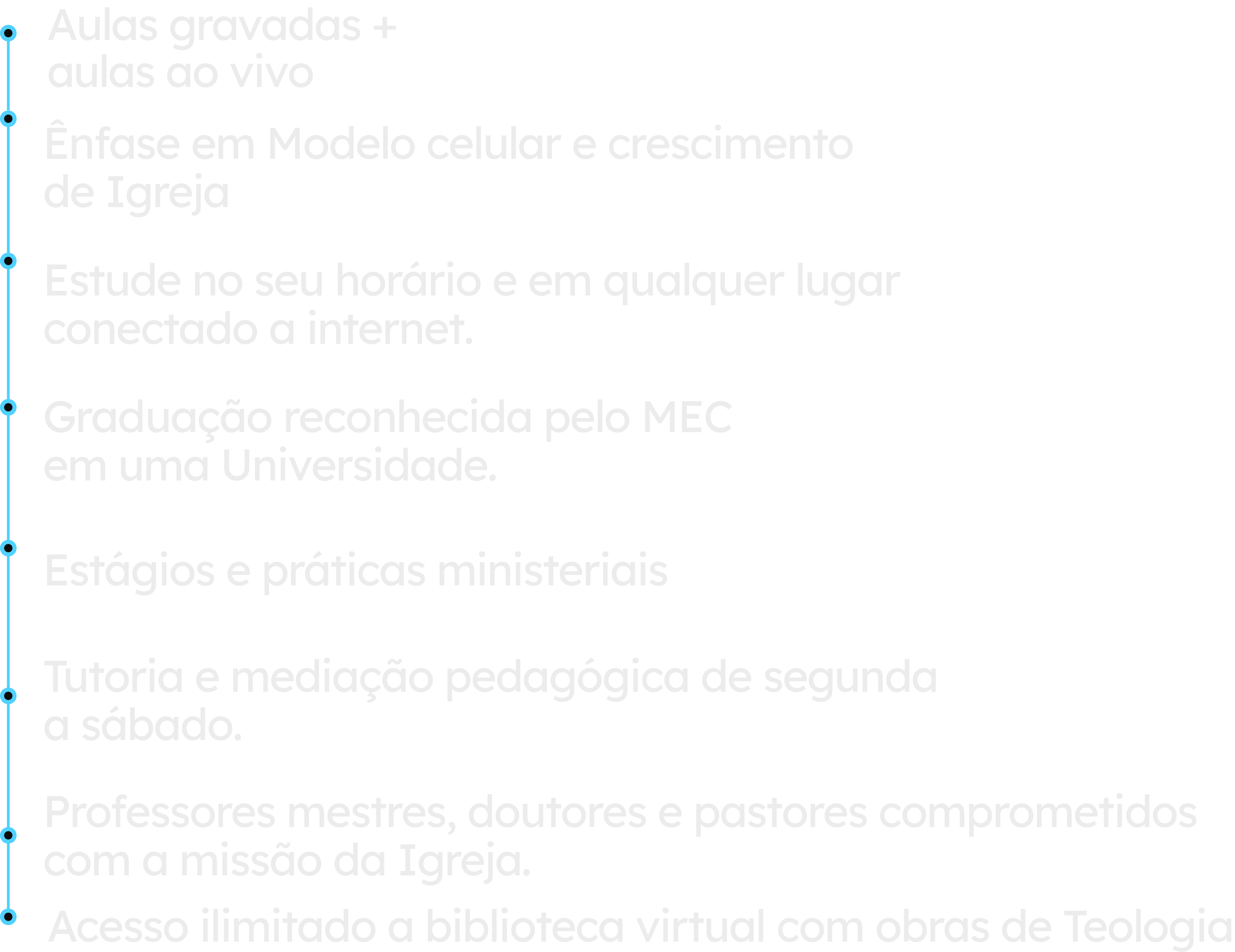 Com a excelência acadêmica da UniEVANGÉLICA e a experiência ministerial da Igreja Central, esta formação é um convite para você que deseja uma formação de qualidade aliada aos princípios de plantação, revitalização e pastoreio de igreja em células. Aqui, a sua vocação de servir e frutificar no Reino de Deus encontra direção, preparo e propósito.